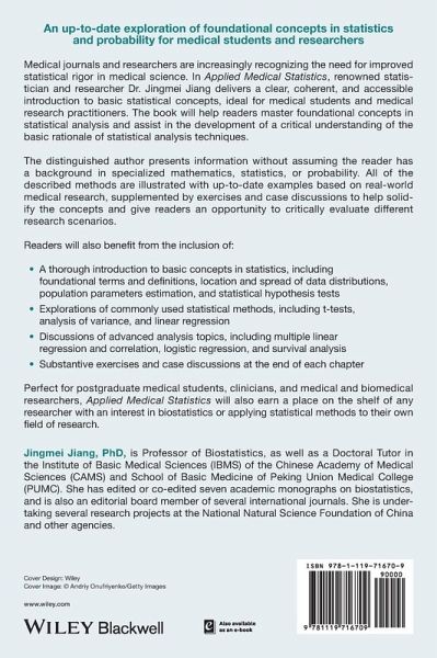 Medical journals and researchers are increasingly recognizing the need for improved statistical rigor in medical science. In Applied Medical Statistics, renowned statistician and researcher Dr. Jingmei Jiang delivers a clear, coherent, and accessible introduction to basic statistical concepts, ideal for medical students and medical research practitioners. The book will help readers master foundational concepts in statistical analysis and assist in the development of a critical understanding of the basic rationale of statistical analysis techniques.