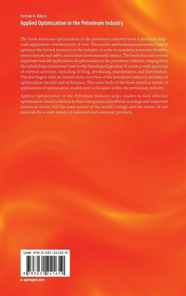 Part I.- Background.- Introduction to the Petroleum and Petrochemical Industries.- Introduction to Optimization Models and Techniques.- Part II.- Applied Optimization in the Petroleum Industry.- Optimum Locations for Drilling Platforms.- Simulation-Based Optimization of Valve Inspection.- Refinery Turnaround Maintenance Scheduling.- Simulation-Based Days-Off Scheduling of a Pipeline Maintenance Workforce.- Optimum Gasoline Blending in Petroleum Refining.- Refined Products Distribution Network Design.- Remote-Site Employee Scheduling with Transportation Considerations.- Ship-Loading Scheduling at an Export Terminal.