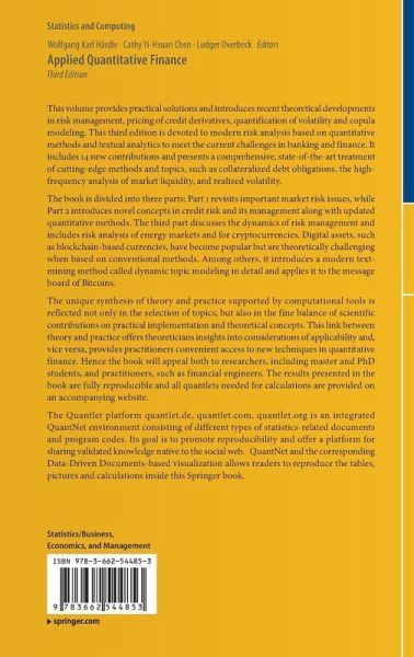 The unique synthesis of theory and practice supported by computational tools is reflected not only in the selection of topics, but also in the fine balance of scientific contributions on practical implementation and theoretical concepts. This link between theory and practice offers theoreticians insights into considerations of applicability and, vice versa, provides practitioners convenient access to new techniques in quantitative finance. Hence the book will appeal both to researchers, including master and PhD students, and practitioners, such as financial engineers. The results presented in the book are fully reproducible and all quantlets needed for calculations are provided on an accompanying website.
