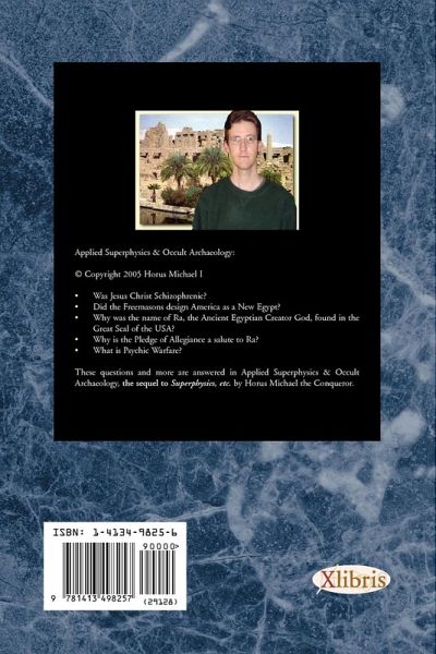 Applied Superphysics & Occult Archaeology: (c) Copyright 2005 Horus Michael I * Was Jesus Christ Schizophrenic? * Did the Freemasons design America as a New Egypt? * Why was the name of Ra, the Ancient Egyptian Creator God, found in the Great Seal of the USA? * Why is the Pledge of Allegiance a salute to Ra? * What is Psychic Warfare? These questions and more are answered in Applied Superphysics & Occult Archaeology, the sequel to Superphysics, etc. by Horus Michael the Conqueror. Included in this book you will find revisions of the Egyptian Cabala & Tao Duat 2 from the original edition, fieldwork (experiments) in Superphysics from Season 2004-2005, a guide on Psychic Warfare and some end results, a poem & short story, and a number of Egyptian texts. A special section is given to Occult Archaeology, whereby research discovered the meaning of Freemason symbolism in America, why certain people are reborn with knowledge from past visits, an interpretation of the New Testament by an outside view, and a new Book for the Dead written in the ancient style.