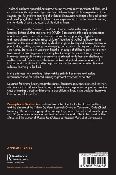This book explores applied theatre practice for children in environments of illness and cure and how it can powerfully normalise children's hospitalisation experience. It is an essential tool for making meaning of children's illness, putting it into a fictional context and developing better control of their clinical experiences. It can be central to raising the standards of care and quality of life during illness.