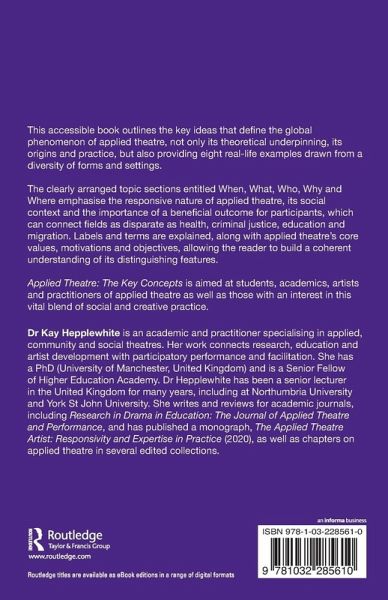 Applied Theatre: The Key Concepts is aimed at students, academics, artists and practitioners of applied theatre as well as those with an interest in this vital blend of social and creative practice.