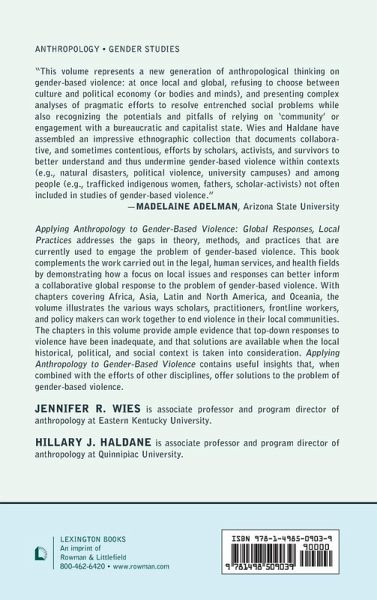 Applying Anthropology to Gender-Based Violence emphasizes the strength of an applied anthropology and ethnographic approach to ending gender-based violence worldwide. This book sets an activist and engaged agenda for scholars and students to follow as they work to blend passion, theory, and methods in their efforts to end violence.