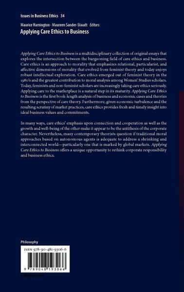 Applying Care Ethics to Business is a multidisciplinary collection of original essays that explores the intersection between the burgeoning field of care ethics and business. Care ethics is an approach to morality that emphasizes relational, particularist, and affective dimensions of morality that evolved from feminist theory and today enjoys robust intellectual exploration. Care ethics emerged out of feminist theory in the 1980's and the greatest contribution to moral analysis among Women' Studies scholars. Today, feminists and non-feminist scholars are increasingly taking care ethics seriously. Applying care to the marketplace is a natural step in its maturity. Applying Care Ethics to Business is the first book-length analysis of business and economic cases and theories from the perspective of care theory. Furthermore, given economic turbulence and the resulting scrutiny of market practices, care ethics provides fresh and timely insight into ideal business values and commitments.
