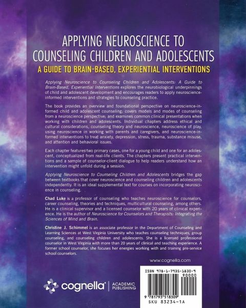 Applying Neuroscience to Counseling Children and Adolescents: A Guide to Brain-Based, Experiential Interventions explores the neurobiological underpinnings of child and adolescent development and encourages readers to apply neuroscience-informed interventions and strategies to counseling practice. The book provides an overview and foundational perspective on neuroscience-informed child and adolescent counseling; covers models and modes of counseling from a neuroscience perspective; and examines common clinical presentations when working with children and adolescents. Individual chapters address ethical and cultural considerations, counseling theory and neuroscience, neuroscience of play, using neuroscience in working with parents and caregivers, and neuroscience-informed interventions to treat anxiety, depression, stress, trauma, substance misuse, and attention and behavioral issues. Each chapter features two primary cases, one for a young child and one for an adolescent, conceptualized from real-life clients. The chapters present practical interventions and a sample of counselor-client dialogue to help readers understand how an intervention might unfold during a session. Applying Neuroscience to Counseling Children and Adolescents bridges the gap between textbooks that cover neuroscience and counseling children and adolescents independently. It is an ideal supplemental text for courses on incorporating neuroscience in counseling.