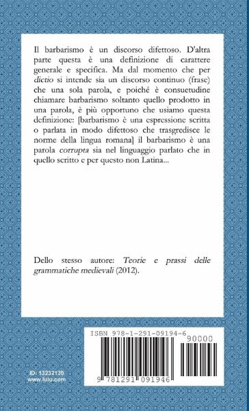 The barbarism is a speech defect. On the other hand this is a definition of general and specific. But since for dictio includes both a continuous speech (phrase) that a single word, and since it is customary to call barbarism only one product in a word, it is more appropriate that we use this definition: [barbarism is an expression in written or spoken so bad that transgresses the norms of the Roman language] the barbarism is a word corrupta both in speech and in the written and this is not Latin.