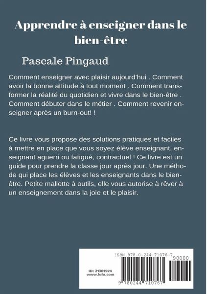Des solutions pratiques et faciles à mettre en place pour prendre la classe jour après jour. Être un enseignant dans le bien être. Petite mallette à outils, pour enseigner dans la joie et le plaisir. Débuter dans la confiance. Revenir enseigner après un burn-out. booster les apprentissages des élèves. Ce livre est à consulter à tout moment de la journée quand on a besoin d'aide.