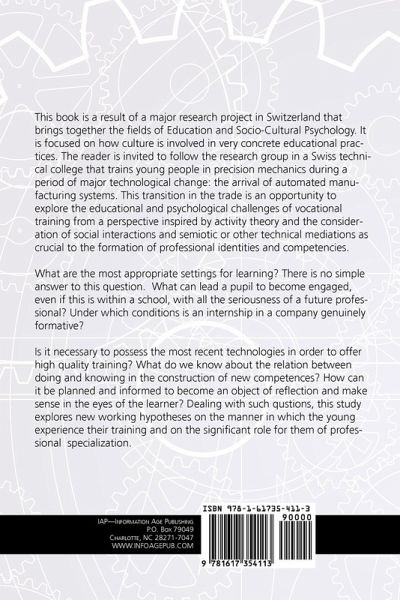 A volume in Advances in Cultural Psychology Series Editor: Jaan Valsiner, Clark University This book is a result of a major research project in Switzerland that brings together the fields of Education and Socio-Cultural Psychology. It is focused on how culture is involved in very concrete educational practices. The reader is invited to follow the research group in a Swiss technical college that trains young people in precision mechanics during a period of major technological change: the arrival of automated manufacturing systems. This transition in the trade is an opportunity to explore the educational and psychological challenges of vocational training from a perspective inspired by activity theory and the consideration of social interactions and semiotic or other technical mediations as crucial to the formation of professional identities and competencies. What are the most appropriate settings for learning? There is no simple answer to this question. What can lead a pupil to become engaged, even if this is within a school, with all the seriousness of a future professional? Under which conditions is an internship in a company genuinely formative? Is it necessary to possess the most recent technologies in order to offer high quality training? What do we know about the relation between doing and knowing in the construction of new competences? How can it be planned and informed to become an object of reflection and make sense in the eyes of the learner? Dealing with such questions, this study explores new working hypotheses on the manner in which the young experience their training and on the significant role for them of professional specialization.