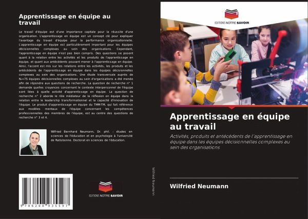 Le travail d'équipe est d'une importance capitale pour la réussite d'une organisation. L'apprentissage en équipe est un concept clé pour expliquer l'avantage du travail d'équipe pour la performance organisationnelle. L'apprentissage en équipe est particulièrement important pour les équipes décisionnelles complexes au sein des organisations. Cependant, l'apprentissage en équipe n'est pas bien compris. Des questions se posent quant à la relation entre les activités et les produits de l'apprentissage en équipe, et quant aux antécédents pouvant mener à l'apprentissage en équipe. Ainsi, l'accent est mis sur les relations entre les activités, les produits et les antécédents de l'apprentissage en équipe dans les équipes décisionnelles complexes au sein des organisations. Une étude transversale auprès de N =75 équipes décisionnelles complexes au sein d'organisations a été menée afin de répondre aux questions de recherche. La question de recherche n° 1 demande quelles croyances concernant le contexte interpersonnel de l'équipe sont liées à quelle activité d'apprentissage en équipe. La question de recherche n° 2 aborde le rôle médiateur de la réflexion en équipe dans la relation entre le leadership transformationnel et la capacité d'innovation de l'équipe. Le produit d'apprentissage en équipe du TMM-TM, qui fait référence aux modèles mentaux de l'équipe concernant les compétences professionnelles des membres de l'équipe, est au centre des questions de recherche n° 3 et 4.
