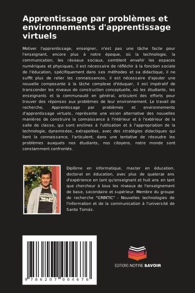 Motiver l'apprentissage, enseigner, n'est pas une tâche facile pour l'enseignant, encore plus à notre époque, où la technologie, la communication, les réseaux sociaux, semblent envahir les espaces numériques et physiques, il est nécessaire de réfléchir à la fonction sociale de l'éducation, spécifiquement dans ses méthodes et sa didactique, il ne suffit plus de relier les connaissances, il est nécessaire d'ajouter une nouvelle composante à la tâche complexe d'éduquer, il est impératif de transcender les niveaux de construction conceptuelle, où les étudiants, les enseignants et la communauté en général, articulent des efforts pour trouver des réponses aux problèmes de leur environnement. Le travail de recherche, Apprentissage par problèmes et environnements d'apprentissage virtuels, représente une vision alternative des nouvelles manières de construire la connaissance à l'intérieur et à l'extérieur de la salle de classe, qui sont enclines à l'utilisation et à l'appropriation de la technologie, dynamisées, extrapolées, avec des stratégies didactiques qui lient la connaissance, l'articulent, dans une tentative de résoudre les problèmes auxquels nos étudiants, nos citoyens, notre monde sont constamment confrontés.