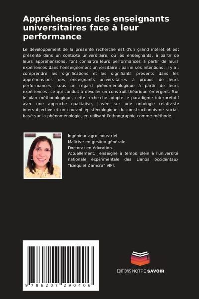 Le développement de la présente recherche est d'un grand intérêt et est présenté dans un contexte universitaire, où les enseignants, à partir de leurs appréhensions, font connaître leurs performances à partir de leurs expériences dans l'enseignement universitaire ; parmi ses intentions, il y a : comprendre les significations et les signifiants présents dans les appréhensions des enseignants universitaires à propos de leurs performances, sous un regard phénoménologique à partir de leurs expériences, ce qui conduit à dévoiler un construit théorique émergent. Sur le plan méthodologique, cette recherche adopte le paradigme interprétatif avec une approche qualitative, basée sur une ontologie relativiste intersubjective et un courant épistémologique du constructionnisme social, basé sur la phénoménologie, en utilisant l'ethnographie comme méthode.