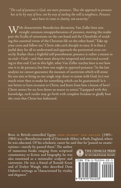 "The end of penance is God, not more penances. Thus the approach to penance has to be by way of love, not by way of steeling the will to toughness. Penance must have its roots in charity, not austerity." With characteristic Benedictine discretion, Van Zeller here sets straight common misapprehensions of penance, steering the reader past the Scylla of extremism on the one hand and the Charybdis of avoiding this essential virtue of the Christian life on the other hand. "Take up your cross and follow me," Christ asks each disciple in turn. It is thus a joyful duty for all to understand and approach the penitential cross correctly. Rather than a frightful self-punishment, penance is rather a means to an end-God-and thus must always be tempered and exercised according to that end. Cast in this light, what Van Zeller teaches here is not how one is to do penance, but how one ought to approach penance: "In the last analysis we cannot guarantee the measure of asceticism which will atone for our sins or bring us one single step closer to union with God. Is it not much wiser then to make for something which can be guaranteed? Is it not better to have recourse to Christ, and learn from him a lesson of love? Christ atones for us; love draws us nearer to union." Equipped with this knowledge, each reader may go forth with complete freedom to gladly bear the cross that Christ has fashioned.