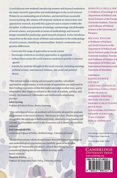 Preface 1. Introduction Donatella della Porta and Michael Keating Part I. Epistemology and Philosophy of the Social Sciences: 2. How many approaches in the social sciences? An epistemological introduction Donatella della Porta and Michael Keating 3. Normative political theory and empirical research Rainer Bauböck 4. Causal explanation Adrienne Héritier 5. Constructivism: what it is (not) and how it matters Friedrich Kratochwil 6. Culture and social science Michael Keating 7. Historical institutionalism Sven Steinmo 8. Game theory Christine Chwaszcza 9. Rationality and recognition Alessandro Pizzorno Part II. Research Design: 10. Concepts and concept formation Peter Mair 11. Comparative analysis: case-oriented versus variable-oriented research Donatella della Porta 12. Case studies and process tracing: theories and practices Pascal Vennesson 13. Quantitative analysis Mark Franklin 14. The design of social and political research Philippe Schmitter 15. Ethnographic approaches Zoe Bray 16. Comparing approaches, methodologies and methods. Some concluding remarks Donatella della Porta and Michael Keating References Glossary Index.