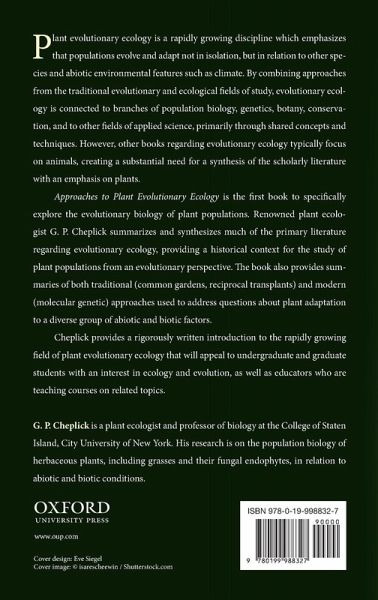 This book introduces the rapidly growing field of plant evolutionary ecology. It summarizes and synthesizes much primary literature, providing a historical context for the study of populations. It also examines both traditional (common gardens, reciprocal transplants) and modern (molecular genetic) approaches used to address questions about adaptation to abiotic and biotic factors.