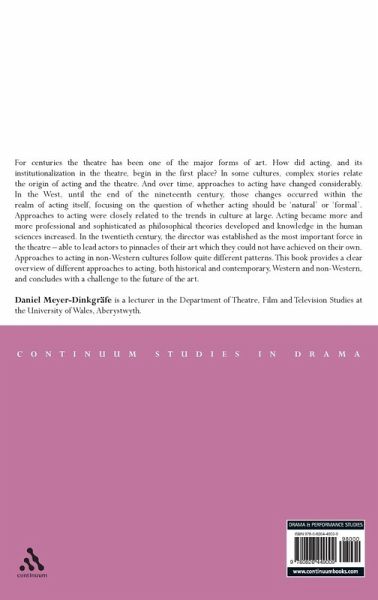 For centuries the theatre has been one of the major forms of art. How did acting, and its institutionalization in the theatre, begin in the first place? In some cultures complex stories relate the origin of acting and the theatre. And over time, approaches to acting have changed considerably. In the West, until the end of the 19th century, those changes occurred within the realm of acting itself, focusing on the question of whether acting should be 'natural' or 'formal.' Approaches to acting were closely related to the trends in culture at large. Acting became more and more professional and sophisticated as philosophical theories developed and knowledge in the human sciences increased. In the 20th century, the director was established as the most important force in the theater--able to lead actors to pinnacles of their art which they could not have achieved on their own. Approaches to acting in non-Western cultures follow quite different patterns. This book provides a clear overview of different approaches to acting, both historical and contemporary, Western and non-Western, and concludes with a challenge to the future of the art.