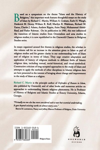 Based on a symposium on the theme @Islam and the History of Religions', this important work features thoughtful essays on the study of Islam by Richard C. Martin, William A. Graham, Earle H. Waugh, Frederick M. Denny, William R. Roff, Marilyn R. Waldman, Richard M. Eaton, Charles J. Adams, Andrew Rippin, Azim Nanji, Muhammad Abdul-Rauf, and Fazlur Rahman. On its publication in 1985, this text influenced the transition of Islamic studies from Orientalism and area studies to religious studies; it is now republished in the Oneworld Classics in religious Studies series. In essays organized around five themes in religious studies, the scholars in this volume call for an increase I the attention given to Islam as part of religious studies and for greater clarity in our understanding both of Islam and of religion in terms of Islam. They urge creative adaptation and application of history of religious methods to different fiels of Islamic religious data, including textual, social-historical, and ritual-symbolical. Constructuve criticism of long-accepted approaches to the study of Islam and attempts to apply the methods of other disciplines to Islamic religious data are here presented in the interest of bringing about change and improvement in the study of Islam as a religion.