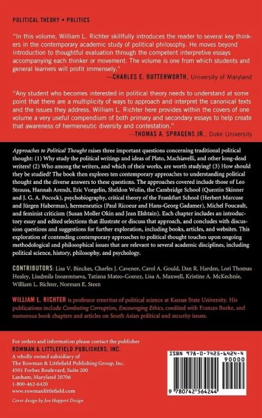 William L. Richter is professor emeritus of political science at Kansas State University. He has served as Kansas State's associate provost for International Programs, head of the Political Science Department, South Asia Center director, and chair of the Landon Lecture Series. His publications include Combating Corruption, Encouraging Ethics, co-edited with Frances Burke, and numerous book chapters and articles on South Asian political and security issues. He has taught political thought for more than four decades, at Kansas State, University of Hawaii, Illinois Institute of Technology, and Panjab University, Chandigarh, India. He continues to find the approaches discussed in this book exciting and challenging.