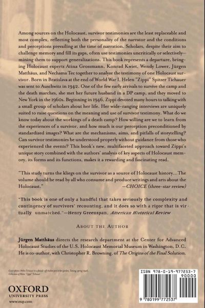 Atina Grossmann, Konrad Kwiet, Wendy Lower, Jà rgen Matthà us, and Nechama Tec analyze the testimony of one Holocaust survivor, Helen "Zippi" Spitzer Tichauer. This book's new, multifaceted approach toward Zippi's unique story combined with the authors' analysis of key aspects of Holocaust memory, its forms and its functions, makes it a rewarding and fascinating read.
