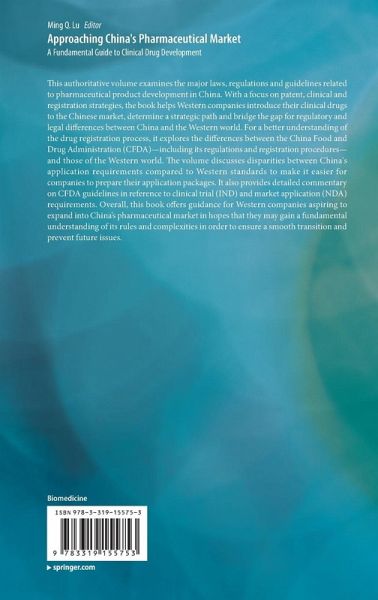 This authoritative volume examines the major laws, regulations and guidelines related to pharmaceutical product development in China. With a focus on patent, clinical and registration strategies, the book helps Western companies introduce their clinical drugs to the Chinese market, determine a strategic path and bridge the gap for regulatory and legal differences between China and the Western world. For a better understanding of the drug registration process, it explores the differences between the China Food and Drug Administration (CFDA)-including its regulations and registration procedures-and those of the Western world. The volume discusses disparities between China's application requirements compared to Western standards to make it easier for companies to prepare their application packages. It also provides detailed commentary on CFDA guidelines in reference to clinical trial (IND) and market application (NDA) requirements. Overall, this book offers guidance for Western companies aspiring to expand into China's pharmaceutical market in hopes that they may gain a fundamental understanding of its rules and complexities in order to ensure a smooth transition and prevent future issues.