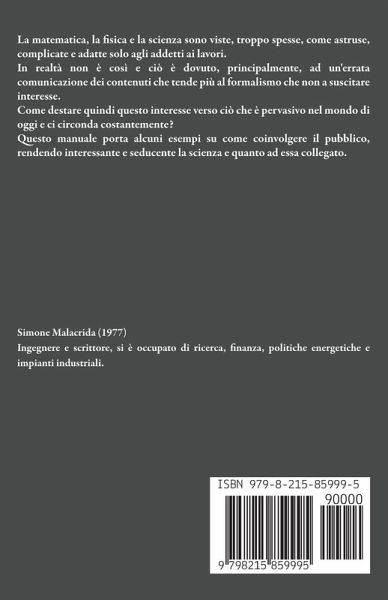 La matematica, la fisica e la scienza sono viste, troppo spesse, come astruse, complicate e adatte solo agli addetti ai lavori. In realtà non è così e ciò è dovuto, principalmente, ad un'errata comunicazione dei contenuti che tende più al formalismo che non a suscitare interesse. Come destare quindi questo interesse verso ciò che è pervasivo nel mondo di oggi e ci circonda costantemente? Questo manuale porta alcuni esempi su come coinvolgere il pubblico, rendendo interessante e seducente la scienza e quanto ad essa collegato.