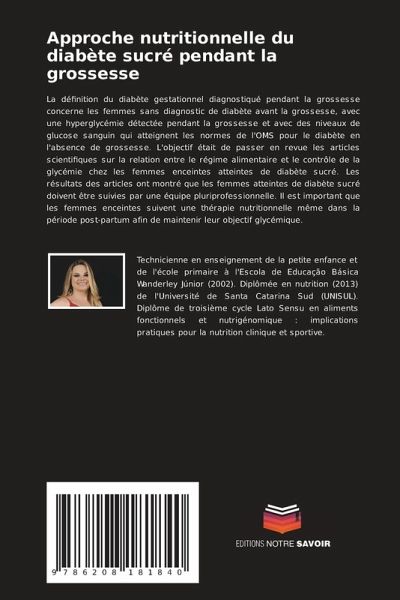 La définition du diabète gestationnel diagnostiqué pendant la grossesse concerne les femmes sans diagnostic de diabète avant la grossesse, avec une hyperglycémie détectée pendant la grossesse et avec des niveaux de glucose sanguin qui atteignent les normes de l'OMS pour le diabète en l'absence de grossesse. L'objectif était de passer en revue les articles scientifiques sur la relation entre le régime alimentaire et le contrôle de la glycémie chez les femmes enceintes atteintes de diabète sucré. Les résultats des articles ont montré que les femmes atteintes de diabète sucré doivent être suivies par une équipe pluriprofessionnelle. Il est important que les femmes enceintes suivent une thérapie nutritionnelle même dans la période post-partum afin de maintenir leur objectif glycémique.