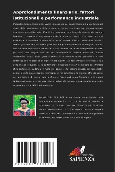 L'approfondimento finanziario, ovvero l'espansione dei servizi finanziari a una fascia più ampia della popolazione e delle imprese, è considerato essenziale per uno sviluppo industriale sostenibile nella SSA. Il libro analizza come l'approfondimento dei mercati finanziari, compreso il miglioramento dell'accesso al credito, crei opportunità di espansione, innovazione e produttività per le imprese. I fattori istituzionali, come il quadro giuridico, la qualità della governance e gli standard normativi, svolgono un ruolo cruciale nella performance industriale. Il libro sostiene che i Paesi con quadri istituzionali più solidi sono meglio attrezzati per promuovere la crescita industriale, attrarre investimenti diretti esteri (IDE) e stimolare la diversificazione economica. Il libro sottolinea che, in assenza di miglioramenti significativi delle infrastrutture finanziarie e della qualità istituzionale, la performance industriale nell'ASA continuerà ad affrontare sfide sostanziali. Evidenzia il ruolo del governo, del settore privato, dei responsabili politici e delle organizzazioni internazionali nel catalizzare le riforme, offrendo spunti per una tabella di marcia volta a sfruttare l'approfondimento finanziario e le riforme istituzionali come leve per una robusta industrializzazione e una crescita economica sostenuta in tutta l'Africa subsahariana.