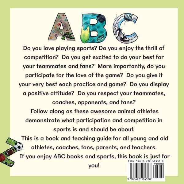 Do you love playing sports? Do you enjoy the thrill of competition? Do you get excited to do your best for your teammates and fans? More importantly, do you participate for the love of the game? Do you give it your very best each practice and game? Do you display a positive attitude? Do you respect your teammates, coaches, opponents, and fans? Follow along as these awesome animal athletes demonstrate what participation and competition in sports is and should be about. This is a book and teaching guide for all young and old athletes, coaches, fans, parents, and teachers. If you enjoy ABC books and sports, this book is just for you!