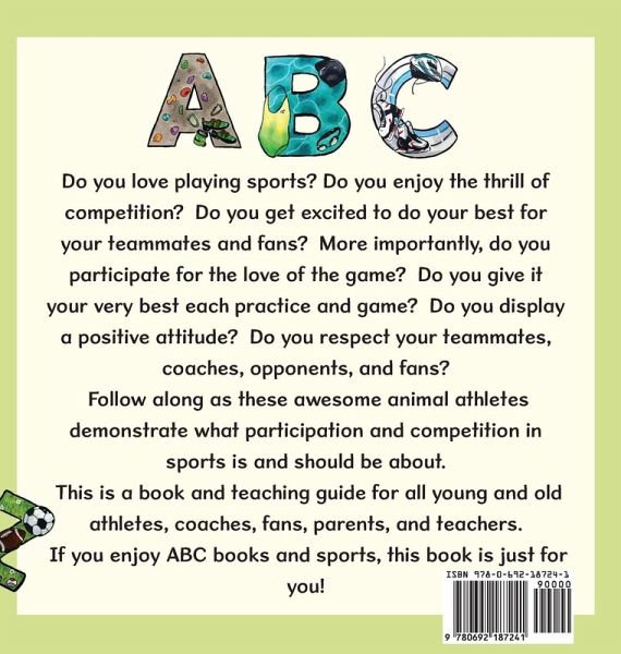 Do you love playing sports? Do you enjoy the thrill of competition? Do you get excited to do your best for your teammates and fans? More importantly, do you participate for the love of the game? Do you give it your very best each practice and game? Do you display a positive attitude? Do you respect your teammates, coaches, opponents, and fans? Follow along as these awesome animal athletes demonstrate what participation and competition in sports is and should be about. This is a book and teaching guide for all young and old athletes, coaches, fans, parents, and teachers. If you enjoy ABC books and sports, this book is just for you!