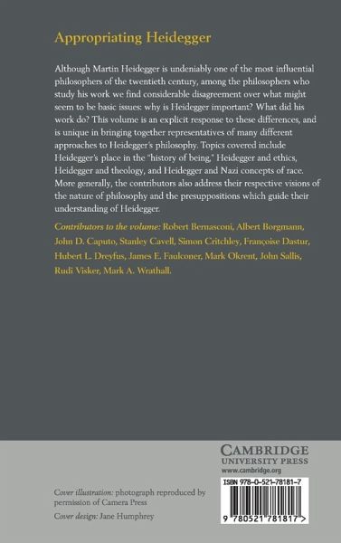 Although Martin Heidegger is undeniably one of the most influential philosophers of the twentieth century, among the philosophers who study his work we find considerable disagreement over what might seem to be basic issues: why is Heidegger important? What did his work do? This volume is an explicit response to these differences, and is unique in bringing together representatives of many different approaches to Heidegger's philosophy. Topics covered include Heidegger's place in the 'history of being', Heidegger and ethics, Heidegger and theology, and Heidegger and Nazi concepts of race. More generally, the contributors also address their respective visions of the nature of philosophy and the presuppositions which guide their understanding of Heidegger.