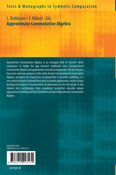 Approximate Commutative Algebra is an emerging field of research which endeavours to bridge the gap between traditional exact Computational Commutative Algebra and approximate numerical computation. The last 50 years have seen enormous progress in the realm of exact Computational Commutative Algebra, and given the importance of polynomials in scientific modelling, it is very natural to want to extend these ideas to handle approximate, empirical data deriving from physical measurements of phenomena in the real world. In this volume nine contributions from established researchers describe various approaches to tackling a variety of problems arising in Approximate Commutative Algebra.