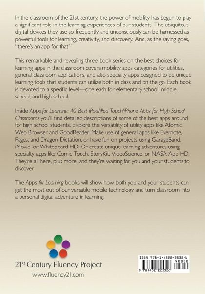 How to teach "generation app" This first book in a three-book series offers a wealth of strategies for integrating 40 of the most effective applications-or apps-for the iPad, iPod Touch, and iPhone into K-12 classrooms to cultivate 21st century fluencies. The authors show how to use them to enhance teaching and learning and to address curricular objectives in an engaging, relevant, real-world environment. Written by practitioners for practitioners, key features include: Apps with an extended shelf life, such as Pages, Keynote, iMovie, and Google Earth An overview of each app's cost, application type, curriculum area, basic functions and features Examples for using each tool in practice