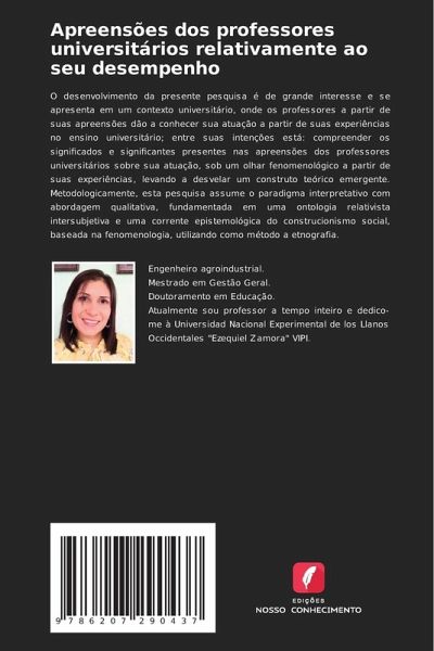 O desenvolvimento da presente pesquisa é de grande interesse e se apresenta em um contexto universitário, onde os professores a partir de suas apreensões dão a conhecer sua atuação a partir de suas experiências no ensino universitário; entre suas intenções está: compreender os significados e significantes presentes nas apreensões dos professores universitários sobre sua atuação, sob um olhar fenomenológico a partir de suas experiências, levando a desvelar um construto teórico emergente. Metodologicamente, esta pesquisa assume o paradigma interpretativo com abordagem qualitativa, fundamentada em uma ontologia relativista intersubjetiva e uma corrente epistemológica do construcionismo social, baseada na fenomenologia, utilizando como método a etnografia.