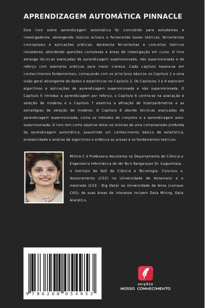 Este livro sobre aprendizagem automática foi concebido para estudantes e investigadores, abrangendo tópicos actuais e fornecendo bases teóricas, ferramentas conceptuais e aplicações práticas. Apresenta ferramentas e conceitos teóricos inovadores, abordando questões complexas e áreas de investigação em curso. O livro abrange técnicas avançadas de aprendizagem supervisionada, não supervisionada e de reforço com exemplos práticos para maior clareza. Cada capítulo baseia-se em conhecimentos fundamentais, começando com os princípios básicos no Capítulo 1 e uma visão geral abrangente de dados e estatísticas no Capítulo 2. Os Capítulos 3 e 4 exploram algoritmos e aplicações de aprendizagem supervisionada e não supervisionada. O Capítulo 5 introduz a aprendizagem por reforço, o Capítulo 6 centra-se na avaliação e seleção de modelos e o Capítulo 7 examina a afinação de hiperparâmetros e as estratégias de seleção de modelos. O Capítulo 8 aborda técnicas avançadas de aprendizagem supervisionada, como os métodos de conjunto e a aprendizagem auto-supervisionada. O livro tem como objetivo dotar os leitores de uma compreensão profunda da aprendizagem automática, assumindo um conhecimento básico de estatística, probabilidade e análise de algoritmos e enfatiza as provas e os fundamentos teóricos.
