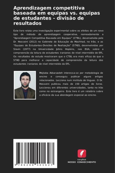 Este livro relata uma investigação experimental sobre os efeitos de um novo tipo de método de aprendizagem cooperativa, nomeadamente a "Aprendizagem Competitiva Baseada em Equipas" (CTBL), desenvolvida pelo Dr. Hosseini (2012) no Gabinete de Educação de Mashhad, no Irão, e as "Equipas de Estudantes-Divisões de Realização" (STAD), desenvolvidas por Slavin (1977) na Universidade Johns Hopkins, nos EUA, sobre a compreensão da leitura de estudantes iranianos de nível intermédio de EFL. Os resultados do estudo mostraram que o CTBL era mais eficaz do que o STAD para melhorar a capacidade de compreensão da leitura dos estudantes iranianos de nível intermédio da EFL.