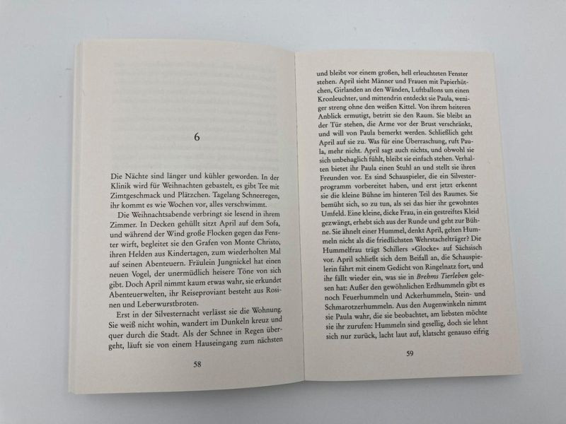 Eine junge Frau, die sich April nennt und nur eines will: nach den Schrecken der Kindheit und einer Jugend ohne Jugend endlich ein selbstbestimmtes Leben führen. Am Anfang stehen ein einziger Koffer und ein Zimmer zur Untermiete im Leipzig der späten 70er-Jahre, am Ende ein Kind, die Ausreise nach Westberlin und ein Literaturstipendium. Dazwischen liegen Ausbrüche und Rückschläge, Glücksmomente und ein Selbstmordversuch. Und die Erfahrung, dass es schwer ist, jemanden zu lieben, aber noch schwerer, sich lieben zu lassen.