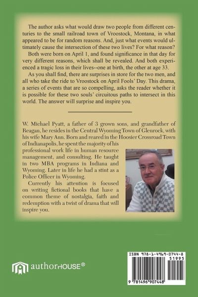 The author asks what would draw two people from different centuries to the small railroad town of Vroostock, Montana, in what appeared to be for random reasons. And, just what events would ultimately cause the intersection of these two lives? For what reason? Both were born on April 1, and found significance in that day for different reasons, which shall be revealed. And both experienced a tragic loss in their lives-one at birth, the other at the age of 33. As you shal find, there are surprises in store for the two men, and all who take the ride to Vroostock on April's Fools' Day. This drama, a series of events that are so compelling, asks the reader whether it possible for these two souls' circuitous paths to intersect in this world. The answer will surprise and inspire you.
