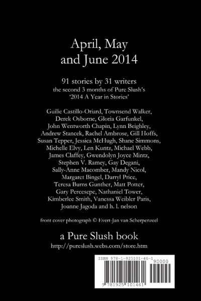 The second three months - 91 stories - by the 31 authors from Pure Slush's '2014 A Year in Stories'. Authors include Guilie Castillo-Oriard, Townsend Walker, Derek Osborne, Gloria Garfunkel, John Wentworth Chapin, Lynn Beighley, Andrew Stancek, Rachel Ambrose, Gill Hoffs, Jessica McHugh, Shane Simmons, Michelle Elvy, Len Kuntz, Michael Webb, James Claffey, Gwendolyn Joyce Mintz, Stephen V. Ramey, Gay Degani, Sally-Anne Macomber, Mandy Nicol, Margaret Bingel, Darryl Price, Teresa Burns Gunther, Matt Potter, Gary Percesepe, Nathaniel Tower, Kimberlee Smith, Vanessa Weibler Paris, Joanne Jagoda and h. l. nelson