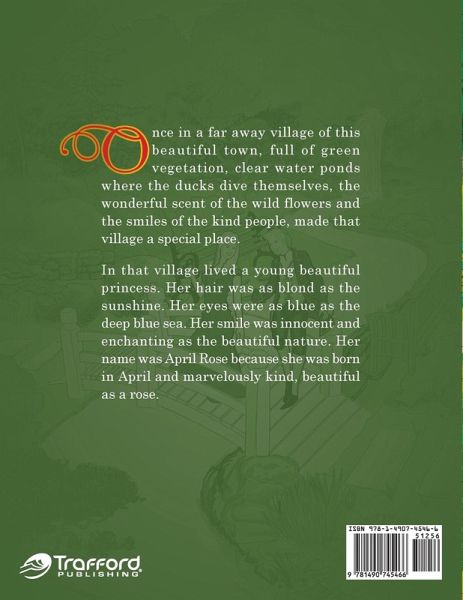 Once in a far away village of this beautiful town, full of green vegetation, clear water ponds where the ducks dive themselves, the wonderful scent of the wild flowers and the smiles of the kind people, made that village a special place. In that village lived a young beautiful princess. Her hair was as blond as the sunshine. Her eyes were as blue as the deep blue sea. Her smile was innocent and enchanting as the beautiful nature. Her name was April Rose because she was born in April and marvelously kind, beautiful as a rose.