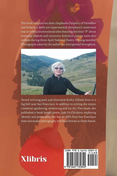 This book contains two short chapbooks: Periphery of Vermillion and Eclectics. Both are experimental. Periphery's constraint was to write unconventional odes featuring the letter "P" about everyday objects and concerns. Eclectics' poems were also written during three April National Poetry Writing months. Photographs taken by the author are interspersed throughout.