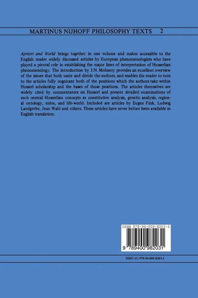 Understanding Husserl¿s Transcendental Phenomenology: An Introductory Essay.- The Problem Of The Phenomenology Of Edmund Husserl.- Operative Concepts in Husserl¿s Phenomenology.- A Transcendental-Phenomenological Investigation concerning Universal Idealism, Intentional Analysis and the Genesis of Habitus: Arch?, Phansis, Hexis, Logos.- Reflections on the Foundation of the Relation between the A Priori and the Eidos in the Phenomenology of Husserl.- Regions of Being and Regional Ontologies in Husserl¿s Phenomenology.- The Problem Posed by the Transcendental Science of the A Priori of the Life-World.- Notes on the First Part Of Experience and Judgment by Husserl.- A Letter from Ludwig Landgrebe to Jean Wahl.- A Note on Some Empiricist Aspects of the Thought of Husserl.- The Specific Character of the Social According to Husserl.- Notes on the Authors.- Notes on the Translator Editors and Contributor.