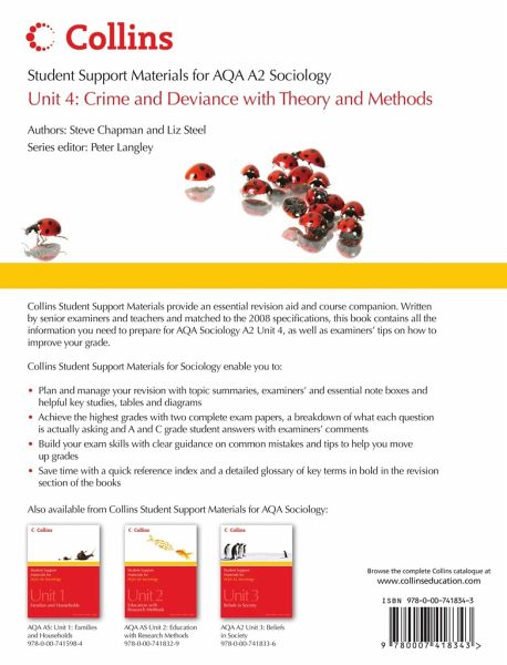 Crime and Deviance with Theory and Methods contains the key information for these A2 Unit 4 topics, with examiners' notes and essential notes to deliver exam success. An exam section contains two sample papers, with answers at A and C grades and detailed comments from AQA examiners on how to move up from a lower grade and secure a higher one.