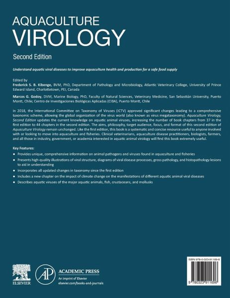 In 2018, the International Committee on Taxonomy of Viruses (ICTV) approved significant changes leading to a comprehensive taxonomic scheme, allowing the global organization of the virus world (also known as virus megataxonomy). Aquaculture Virology, Second Edition updates the current knowledge on aquatic animal viruses so that all virus families (including those with many newly discovered aquatic animal viruses and those with previously unclassified aquatic animal viruses that have been now assigned) are available under one cover, increasing the number of book chapters from 37 in the first edition to 44 chapters in the second edition. The aims, philosophy, target audience, focus, and format of this second edition of Aquaculture Virology remain unchanged. Like the first edition, this book is a systematic and concise resource useful to anyone involved with or looking to move into aquaculture and fisheries. Clinical veterinarians, aquaculture disease practitioners, biologists, farmers, and all those in industry, government, or academia interested in aquatic animal virology will find this book extremely useful.
