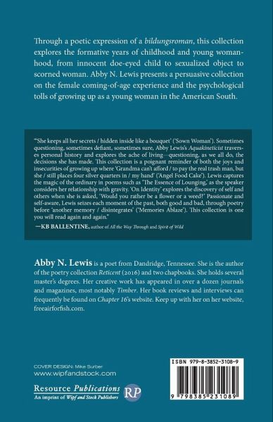 Through a poetic expression of a bildungsroman, this collection explores the formative years of childhood and young womanhood, from innocent doe-eyed child to sexualized object to scorned woman. Abby N. Lewis presents a persuasive collection on the female coming-of-age experience and the psychological tolls of growing up as a young woman in the American South.