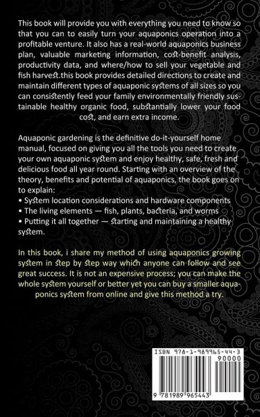 This book will provide you with everything you need to know so that you can to easily turn your aquaponics operation into a profitable venture. It also has a real-world aquaponics business plan, valuable marketing information, cost-benefit analysis, productivity data, and where/how to sell your vegetable and fish harvest.this book provides detailed directions to create and maintain different types of aquaponic systems of all sizes so you can consistently feed your family environmentally friendly sustainable healthy organic food, substantially lower your food cost, and earn extra income. Aquaponic gardening is the definitive do-it-yourself home manual, focused on giving you all the tools you need to create your own aquaponic system and enjoy healthy, safe, fresh and delicious food all year round. Starting with an overview of the theory, benefits and potential of aquaponics, the book goes on to explain: ¿ System location considerations and hardware components ¿ The living elements - fish, plants, bacteria, and worms ¿ Putting it all together - starting and maintaining a healthy system. In this book, i share my method of using aquaponics growing system in step by step way which anyone can follow and see great success. It is not an expensive process; you can make the whole system yourself or better yet you can buy a smaller aquaponics system from online and give this method a try.