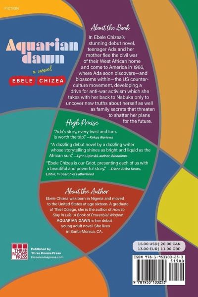 Ebele Chizea was born in Nigeria and moved to the United States at age sixteen. Since graduating with honors in 2004 from Thiel Colege in Greenville, PA, she has published fiction, poetry, and essays in various publications including The African, The Sentinel, The Nigerian Punch, Sahara Reporter, as well as her own online publication, Drumtide Magazine, which featured interviews with prominent figures in the entertainment and literary fields including Afro-punk pioneer Lunden DeLeon, afrobeat musician Seun Kuti, and award-winning Nigerian Belgian novelist, Chika Unigwe. She is the author of How to Slay in Life: A Book of Proverbial Wisdom. Aquarian Dawn is her debut novel. She currently lives in Santa Monica, CA.