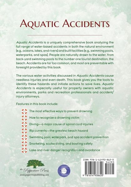 Aquatic Accidents is a uniquely comprehensive book analyzing the full range of water-based accidents in both the natural environment (e.g., oceans, lakes and rivers) and built facilities (e.g., swimming pools, waterparks, and spas). People are naturally drawn to the water, from back-yard swimming pools to the number one tourist destination, the beach. Accidents are far too common, and most are preventable with foresight provided by this book. The various water activities discussed in Aquatic Accidents cause needless injuries and even death. This book gives you the tools to identify these hazards and initiate actions to save lives. Aquatic Accidents is especially useful for property owners with aquatic environments, parks and recreation professionals and accident/injury attorneys. Features in this book include: The most effective ways to prevent drowning How to recognize a drowning victim Diving - a major cause of spinal cord injuries Rip currents - the greatest beach hazard Swimming pool, waterpark, and spa accident prevention Snorkeling, scuba diving, and boating safety Lake and river danger recognition and avoidance