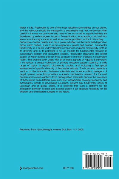 Freshwater Biodiversity is a much underestimated component of global biodiversity, both in its diversity and in its potential to act as models for fundamental research in evolutionary biology and ecosystem studies. Freshwater organisms also reflect quality of water bodies and can thus be used to monitor changes in ecosystem health. The present book comprises a unique collection of primary research papers spanning a wide range of topics in aquatic biodiversity studies, and including a first global assessment of specific diversity of freshwater animals. The book also presents a section on the interaction between scientists and science policy managers. A target opinion paper lists priorities in aquatic biodiversity research for the next decade and several reactions from distinguished scientists discuss the relevance of these items from different points of view: fundamental ecology, taxonomy and systematics, needs of developing countries, present-day biodiversity policy at European andat global scales. It is believed that such a platform for the interaction between science and science policy is an absolute necessity for the efficient use of research budgets in the future.