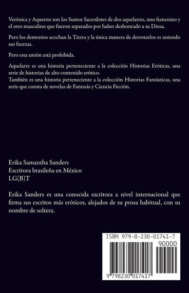 Verónica y Aqueron son los Sumos Sacerdotes de dos aquelarres, uno femenino y el otro masculino que fueron separados por haber deshonrado a su Diosa. Pero los demonios acechan la Tierra y la única manera de derrotarlos es uniendo sus fuerzas. Pero esta unión está prohibida. Aquelarre es una historia perteneciente a la colección Historias Eróticas, una serie de historias de alto contenido erótico. También es una historia perteneciente a la colección Historias Fantásticas, una serie que consta de novelas de Fantasía y Ciencia Ficción.
