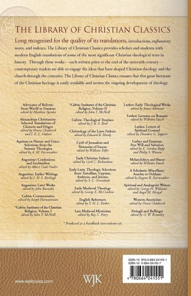 Presents in the English language, and in convenient-size soft cover volumes, a selections of the most indispensable Christian treatises written before the end of the sixteenth century.