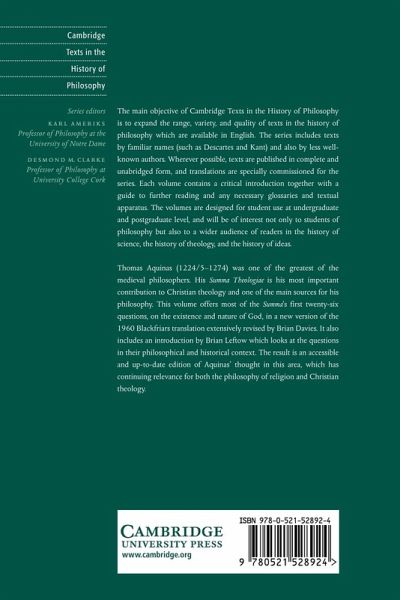 Thomas Aquinas' Summa Theologiae is his most important contribution to Christian theology and one of the main sources for his philosophy. This volume offers most of the Summa's first 26 questions on the existence and nature of God in an extensively revised version of the 1960 Blackfriars translation.